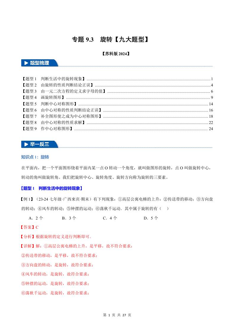 专题9.3 旋转【九大题型】(举一反三)(苏科版2024)(解析版)