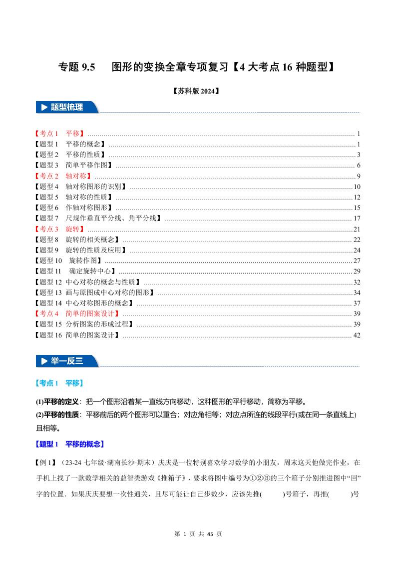 专题9.5 图形的变换全章专项复习【4大考点16种题型】(举一反三)(苏科版2024)(原卷版)