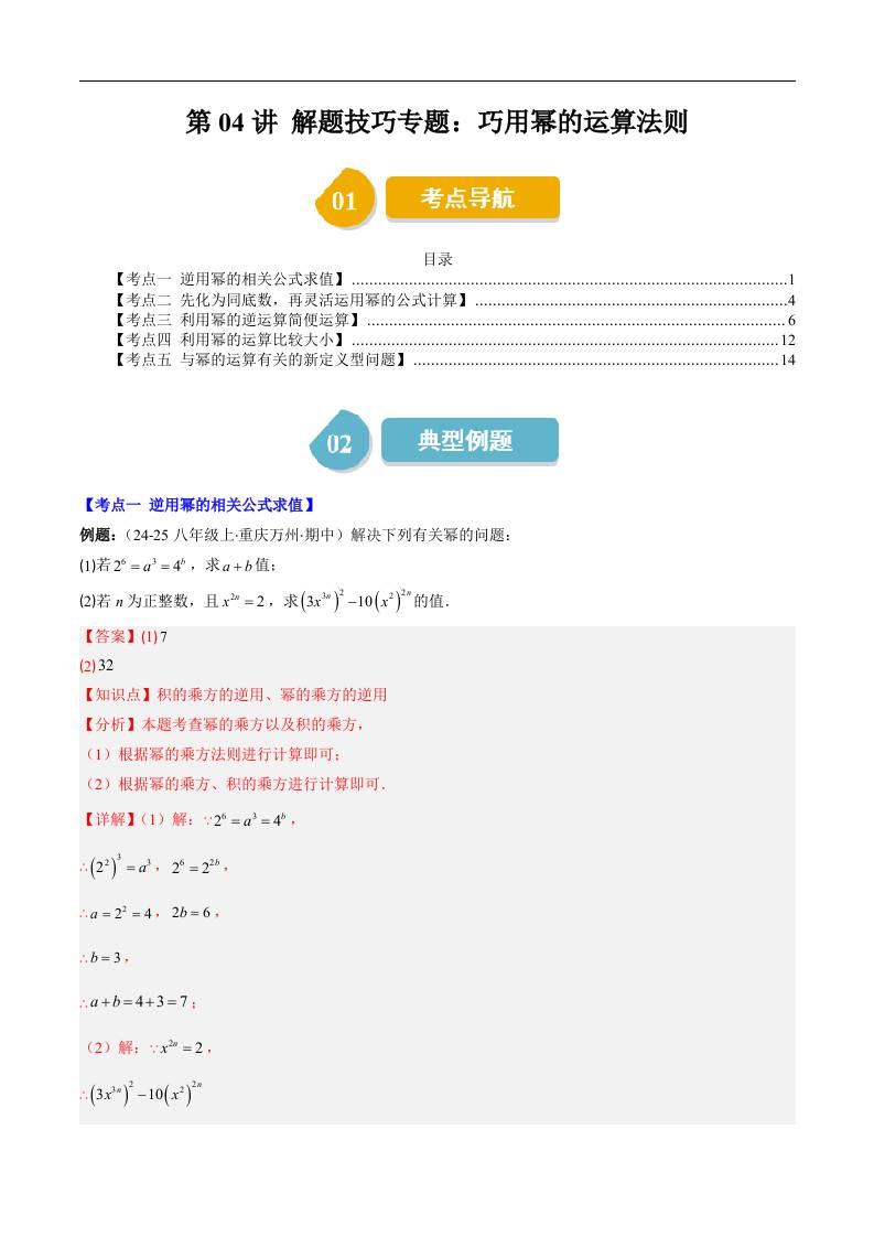 第一章第04讲 解题技巧专题:巧用幂的运算法则(5类热点题型讲练)(解析版)