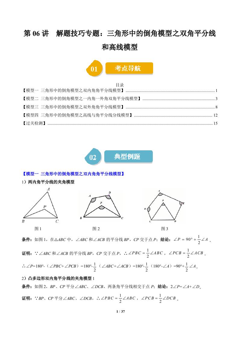 第四章第06讲 解题技巧专题:三角形中的倒角模型之双角平分线和高线模型(4类热点题型讲练)(教师版)