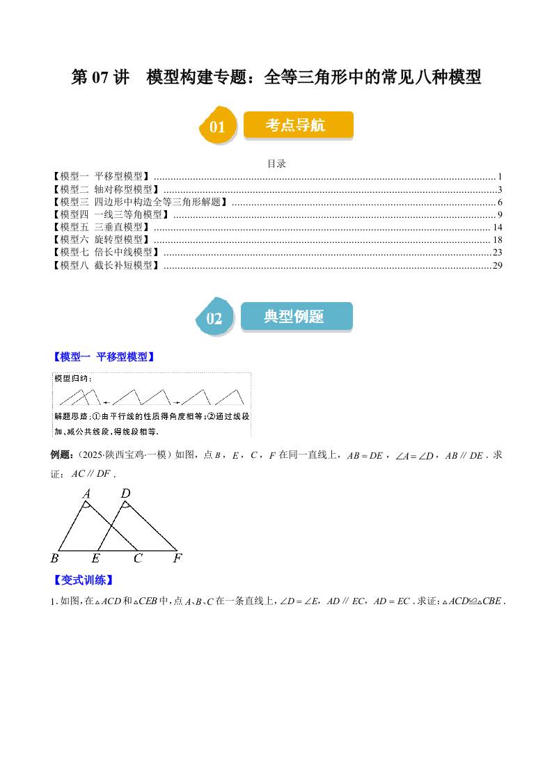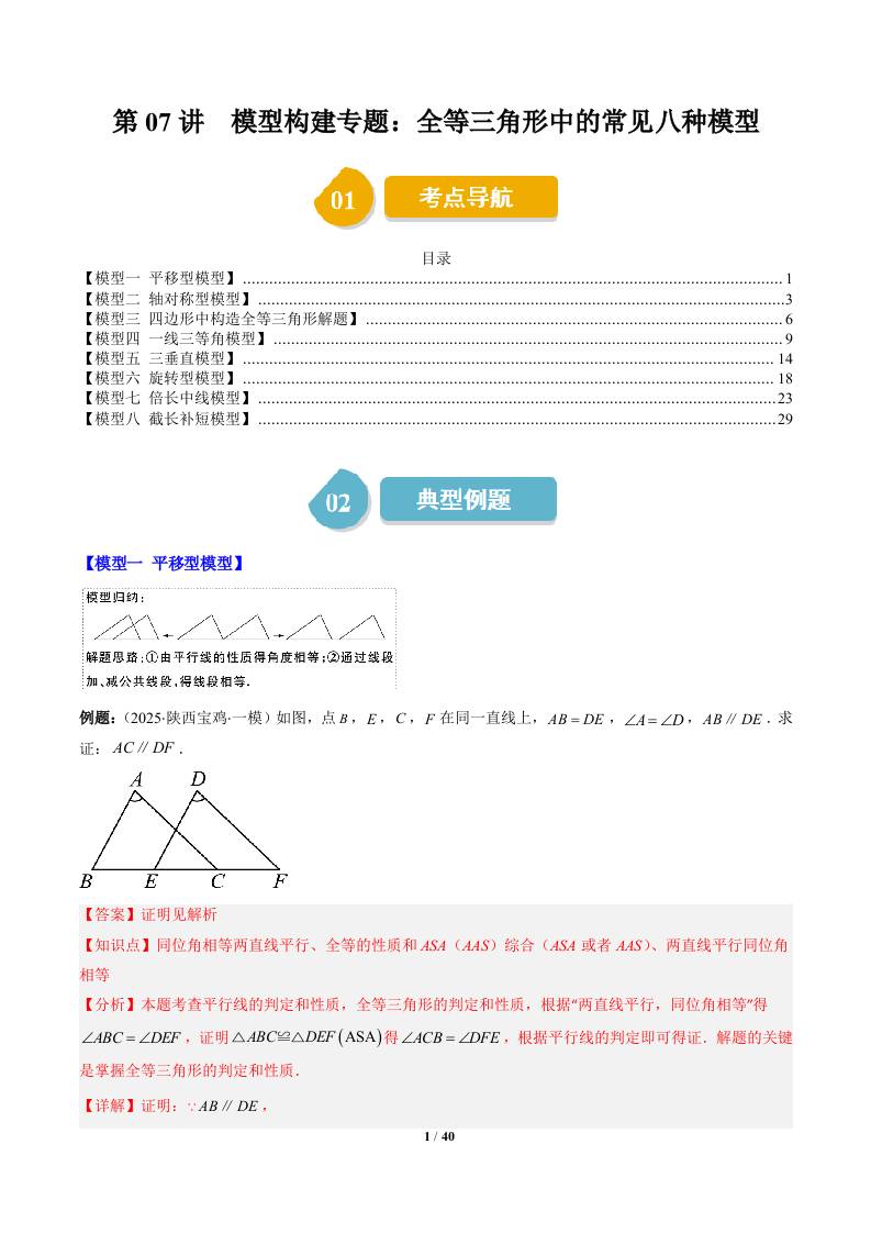 第四章第07讲 模型构建专题:全等三角形中的常见八种模型(8类热点题型讲练)(学生版)