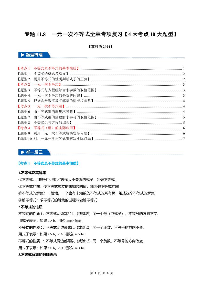 专题11.8 一元一次不等式全章专项复习【4大考点10大题型】(举一反三)(苏科版2024)(解析版)