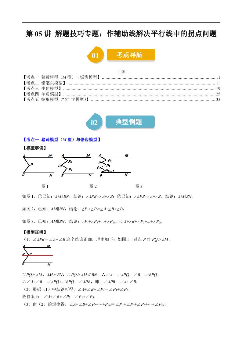 第二章第05讲 解题技巧专题:作辅助线解决平行线中的拐点问题(5类热点题型讲练)(解析版)