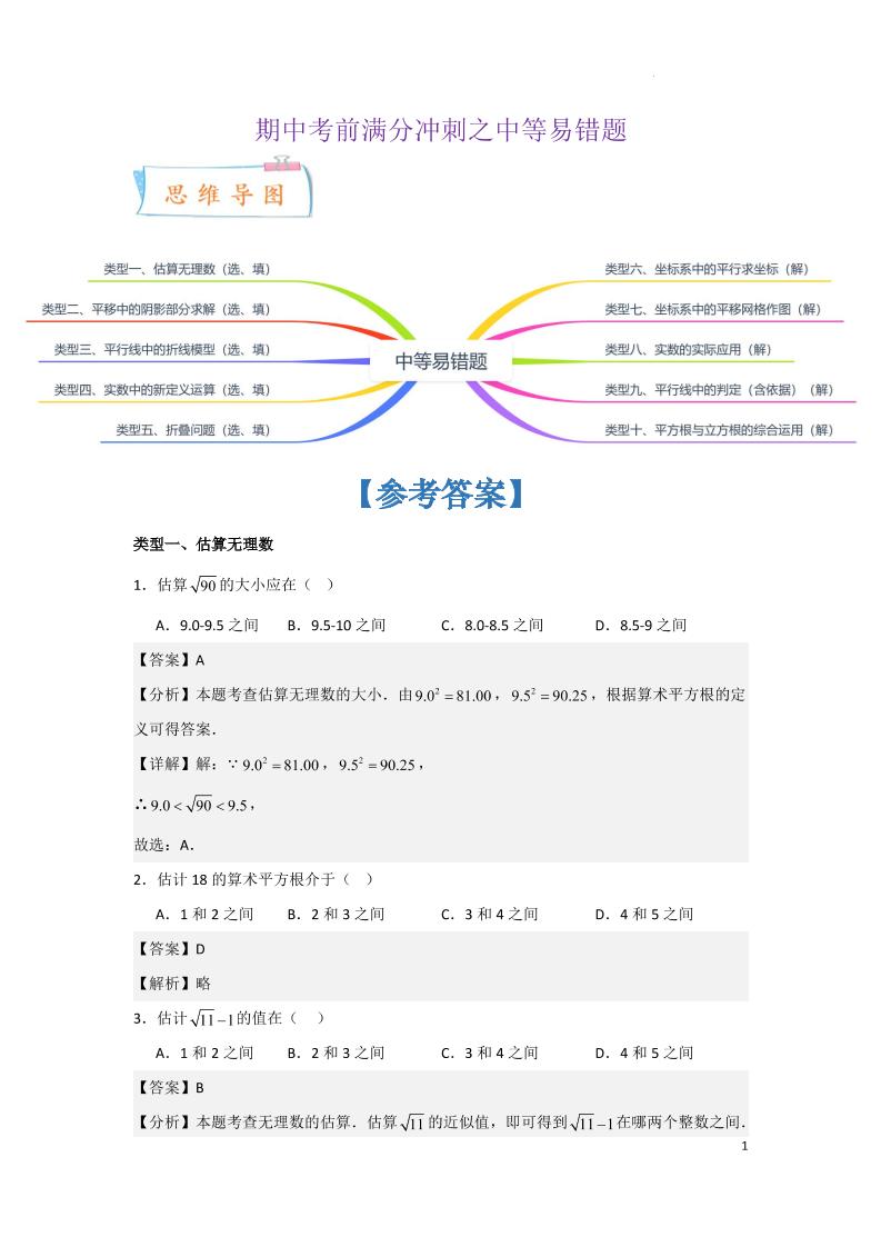 期中考前满分冲刺之中等易错题(解析版)【人教版】