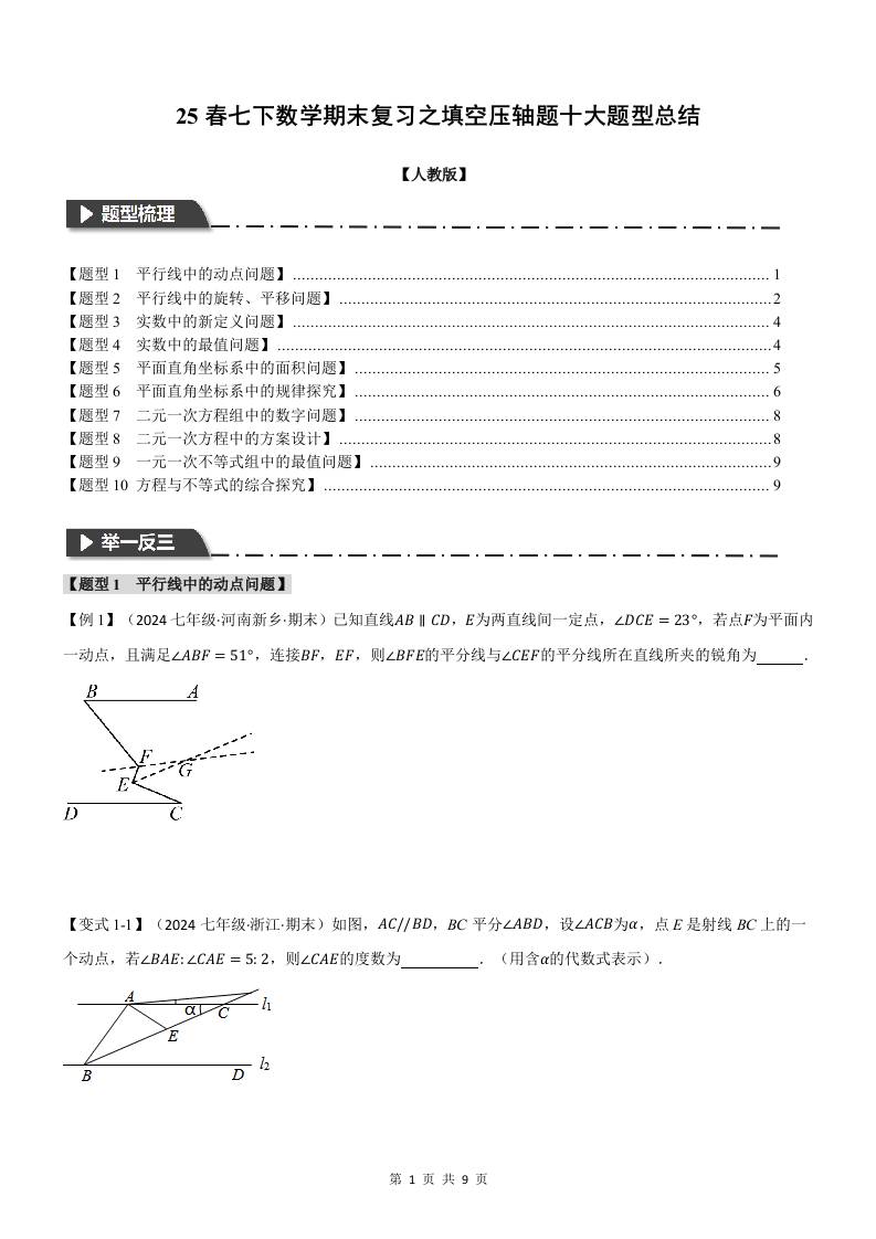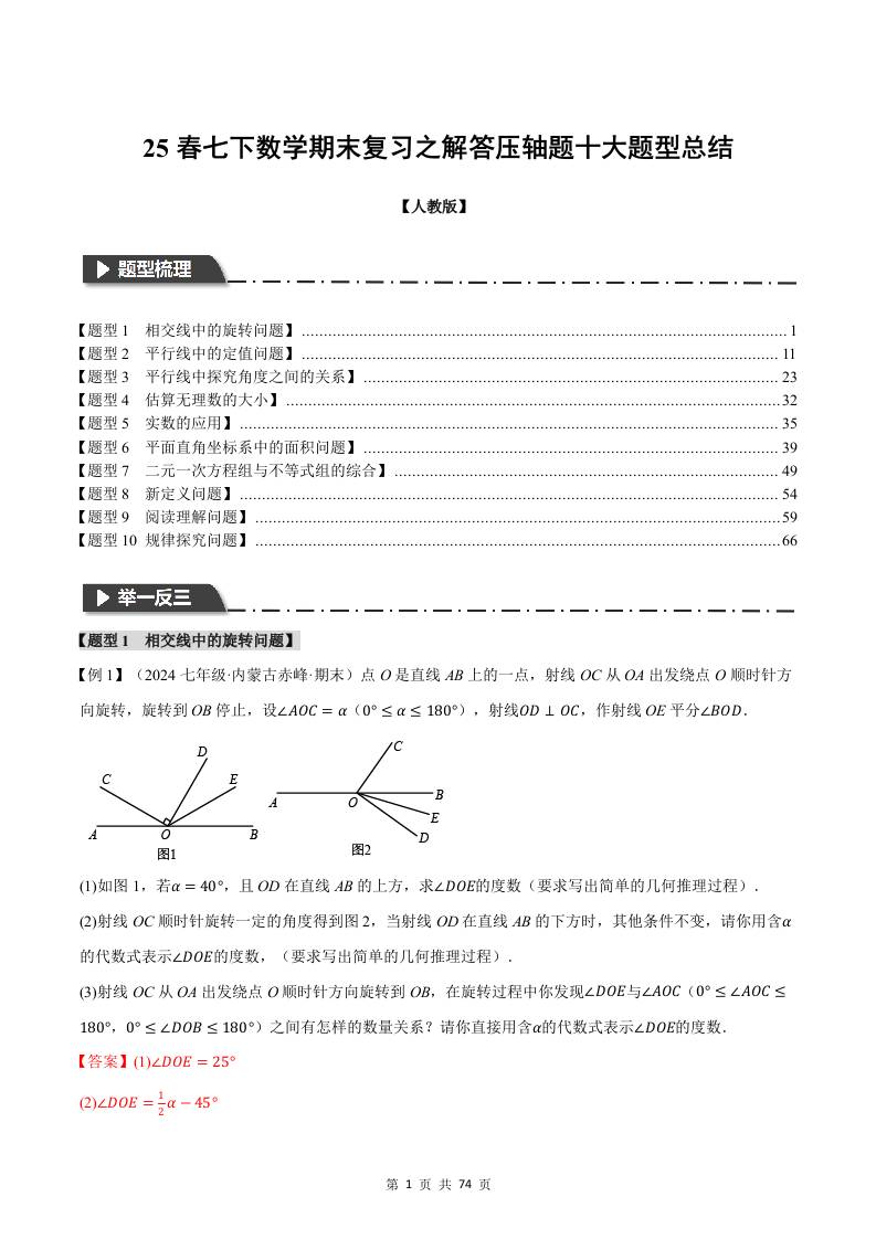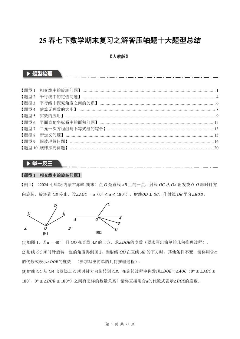 期末复习之解答压轴题十大题型总结(人教版)(原卷版)