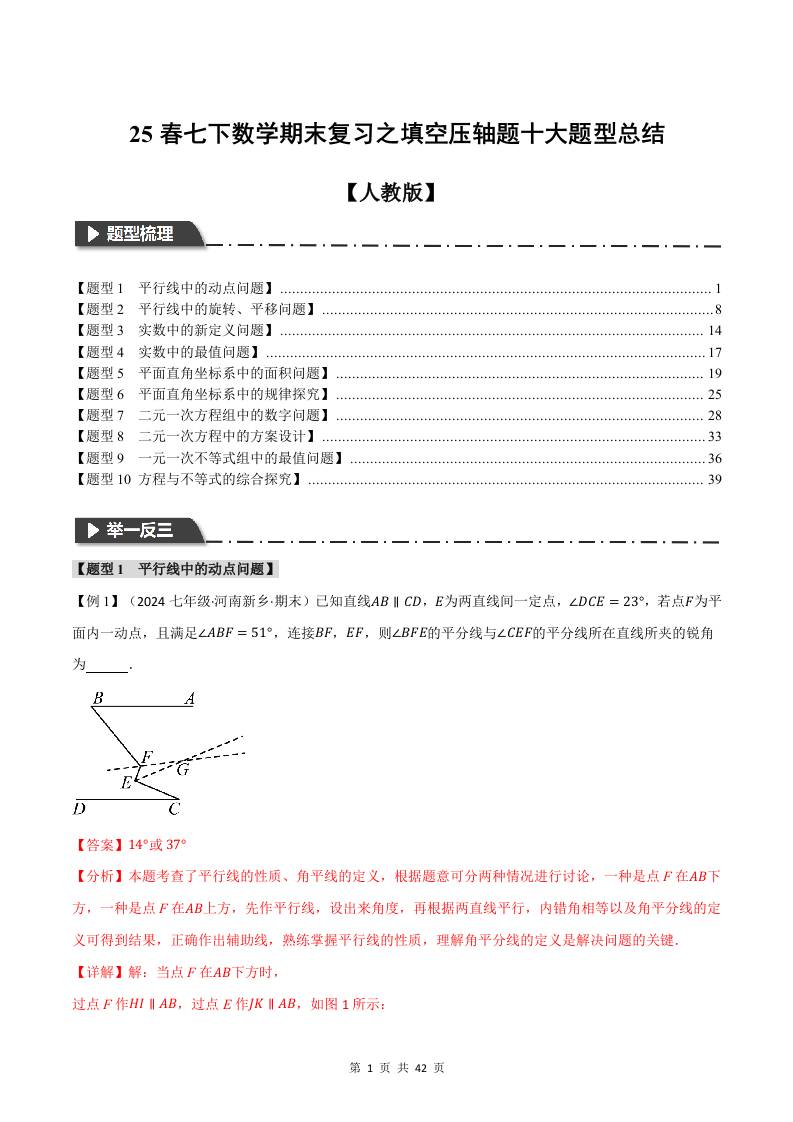 期末复习之解答压轴题十大题型总结(人教版)(解析版)