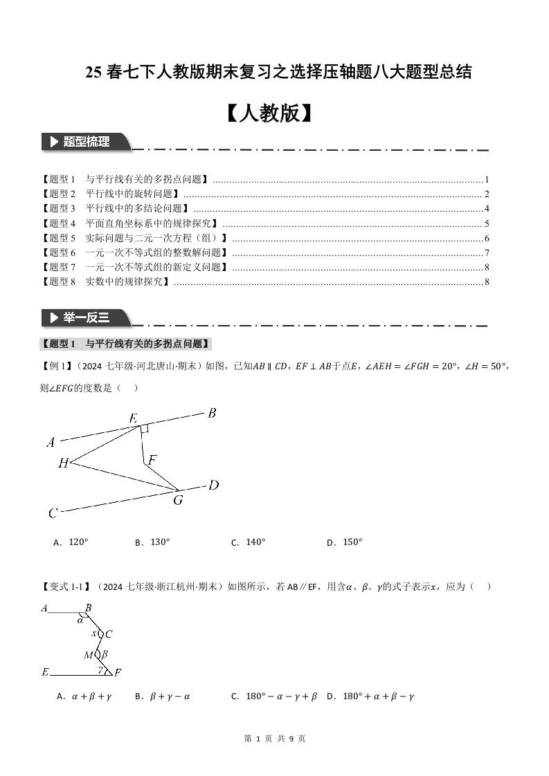 七下数学人教版期末真题百题大通关(12题型)(压轴版)原卷版