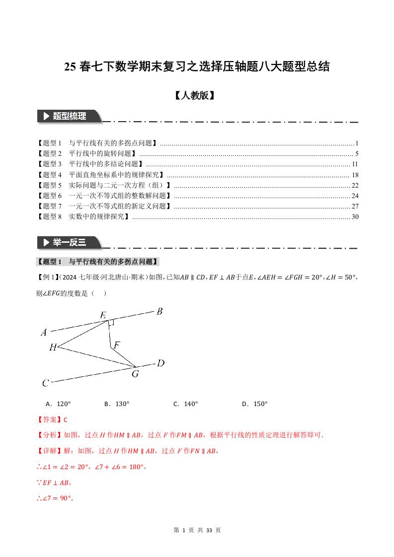七下数学人教版期末真题百题大通关(12题型)(压轴版)解析版