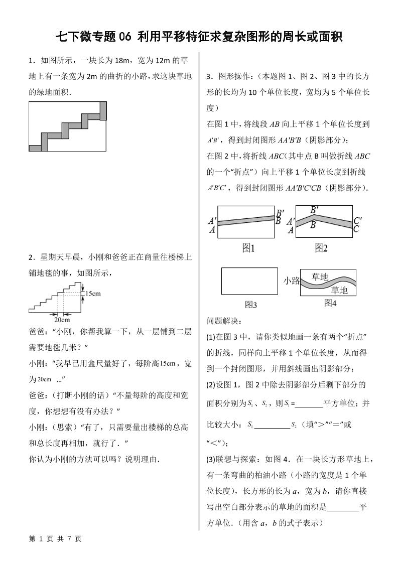 专题06 利用平移特征求复杂图形的周长或面积(原卷版)