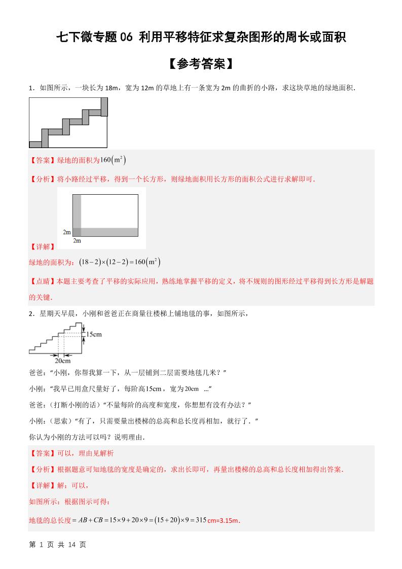 专题06 利用平移特征求复杂图形的周长或面积(解析版)