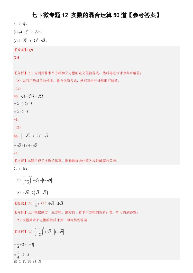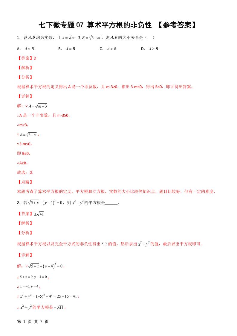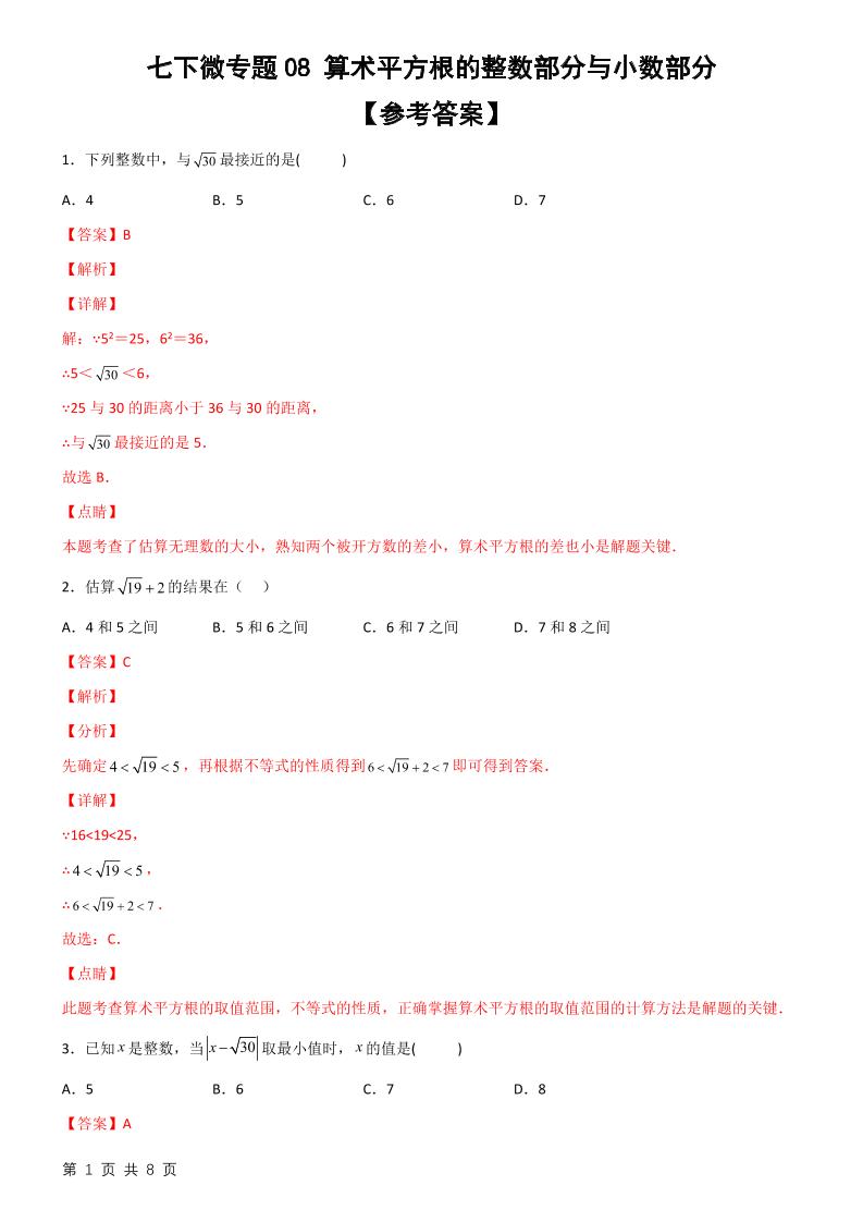 专题08 算术平方根的整数部分与小数部分(解析版)