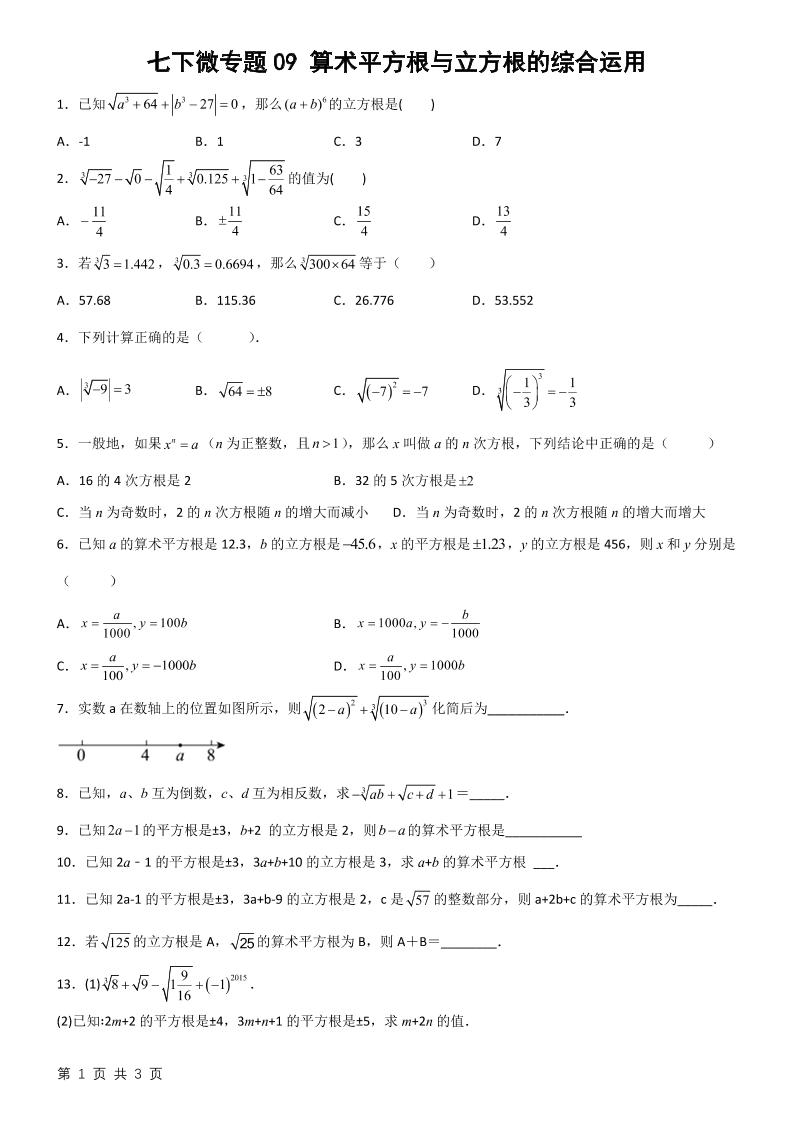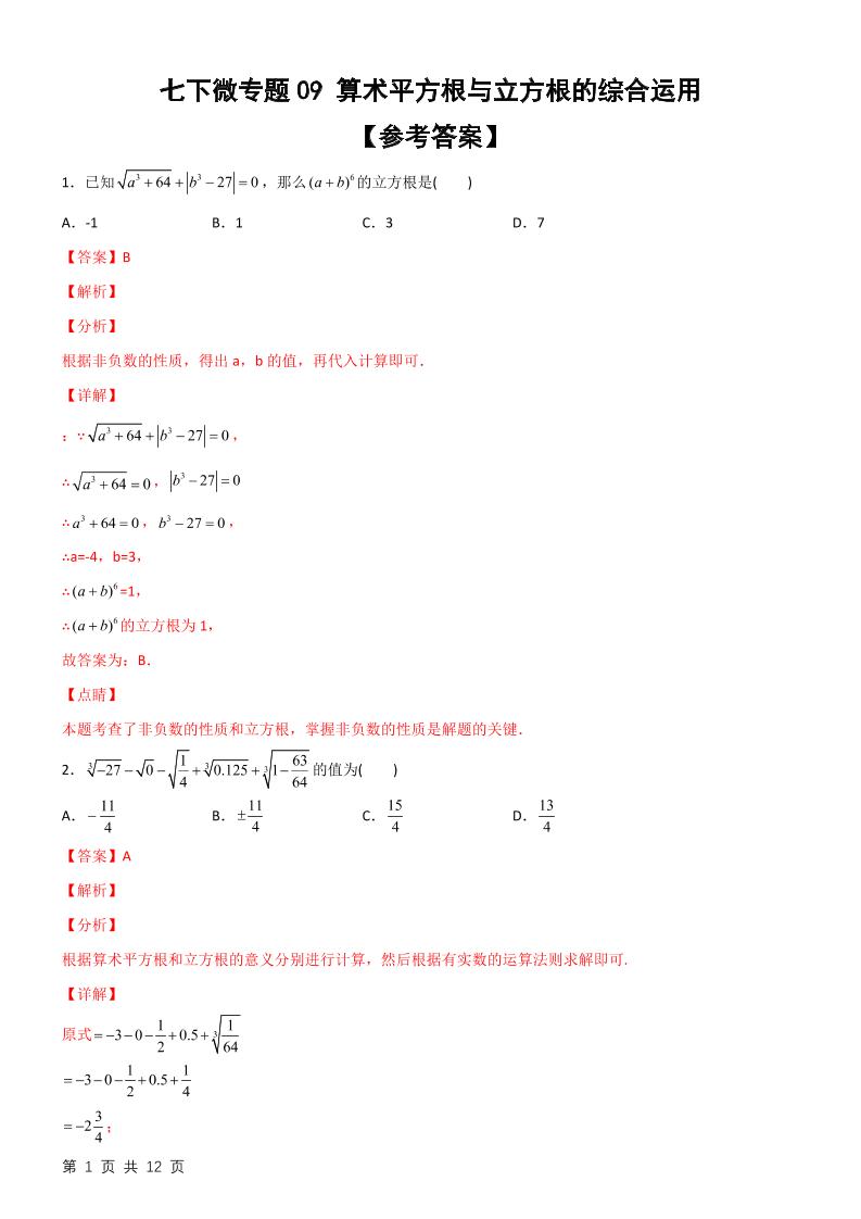 专题09 算术平方根与立方根的综合运用(原卷版)