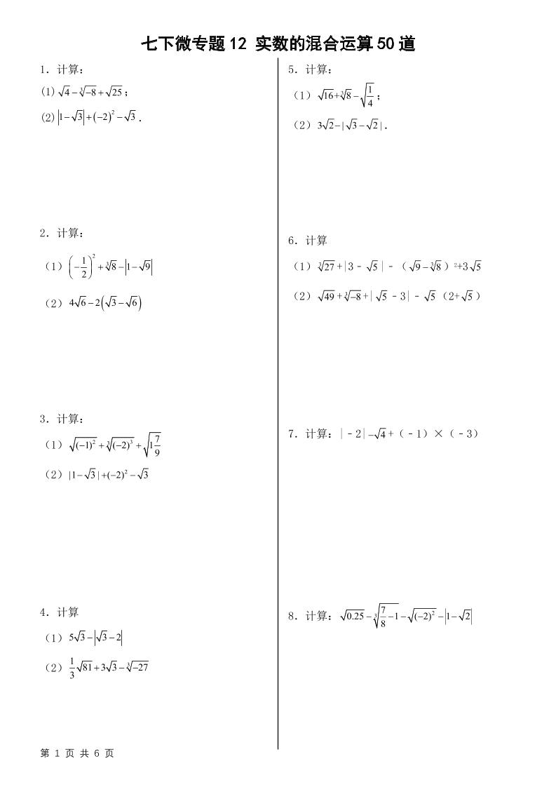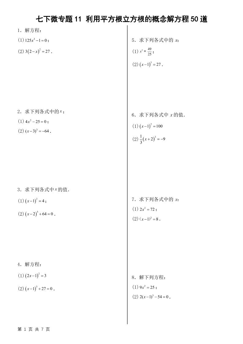 专题11 利用平方根立方根的概念解方程50道(原卷版)