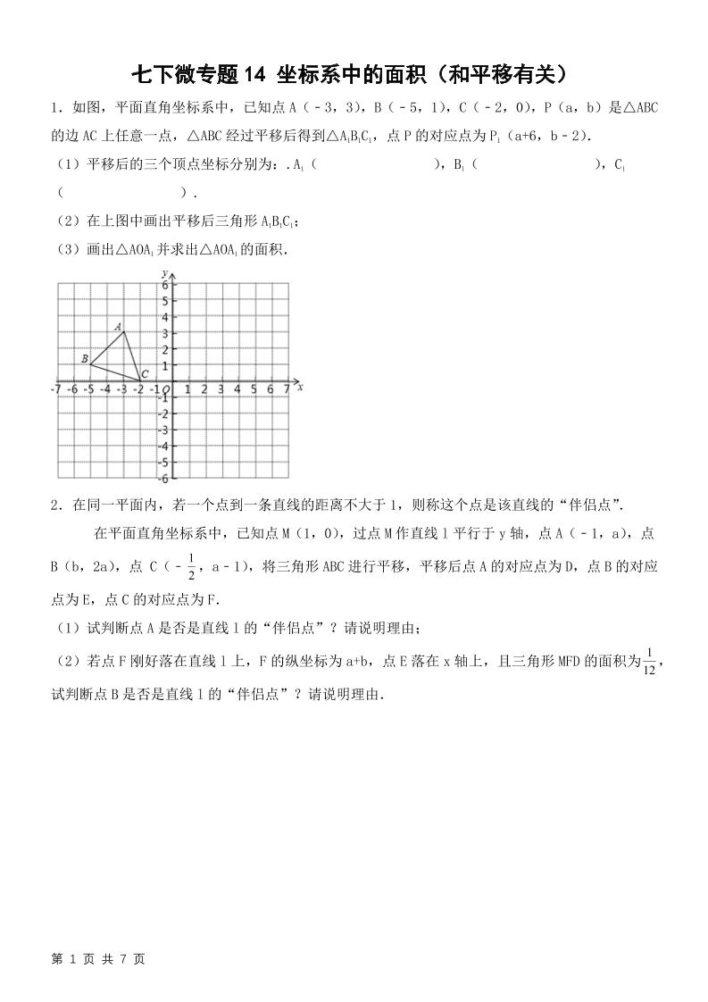 专题14 坐标系中的面积(和平移有关)(原卷版)