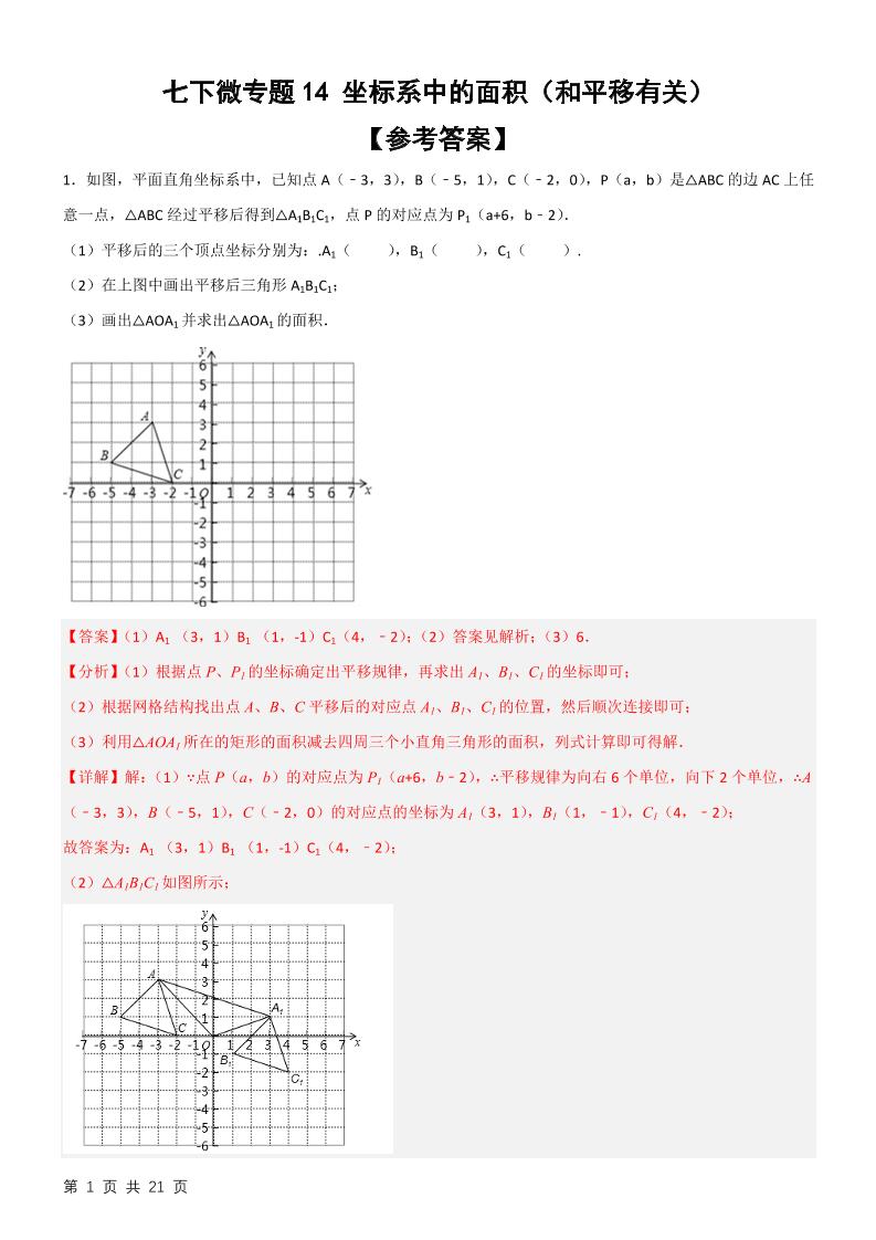 专题14 坐标系中的面积(和平移有关)(解析版)