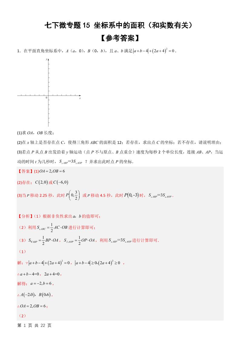 专题15 坐标系中的面积(和实数有关)(解析版)