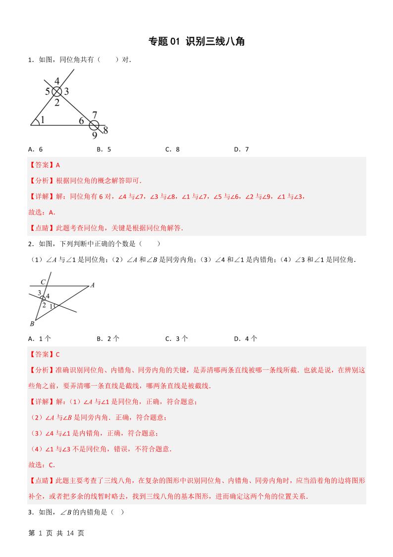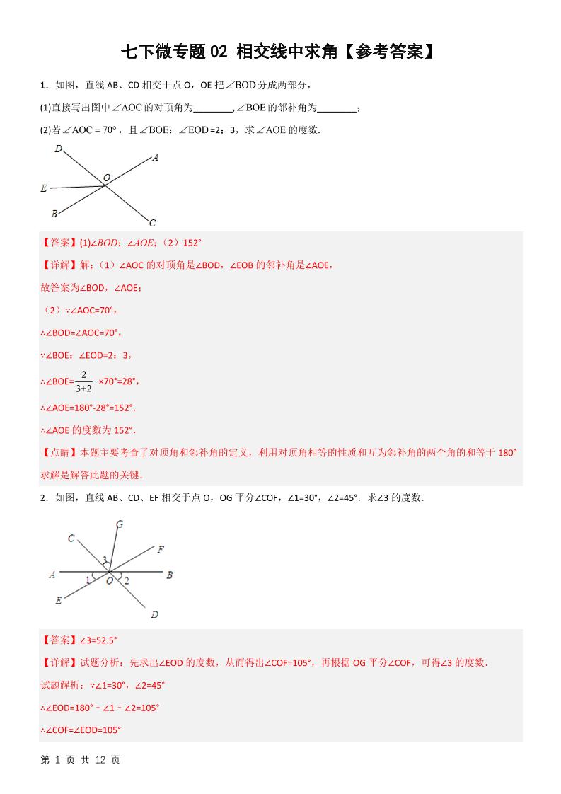 专题6 期末复习题题组——平行线的判定与性质(30题)2025年人教版7年级下册数学(高效学习) 专题6 期末复习题题组——平行线的判定与性质(30题)(解析版)