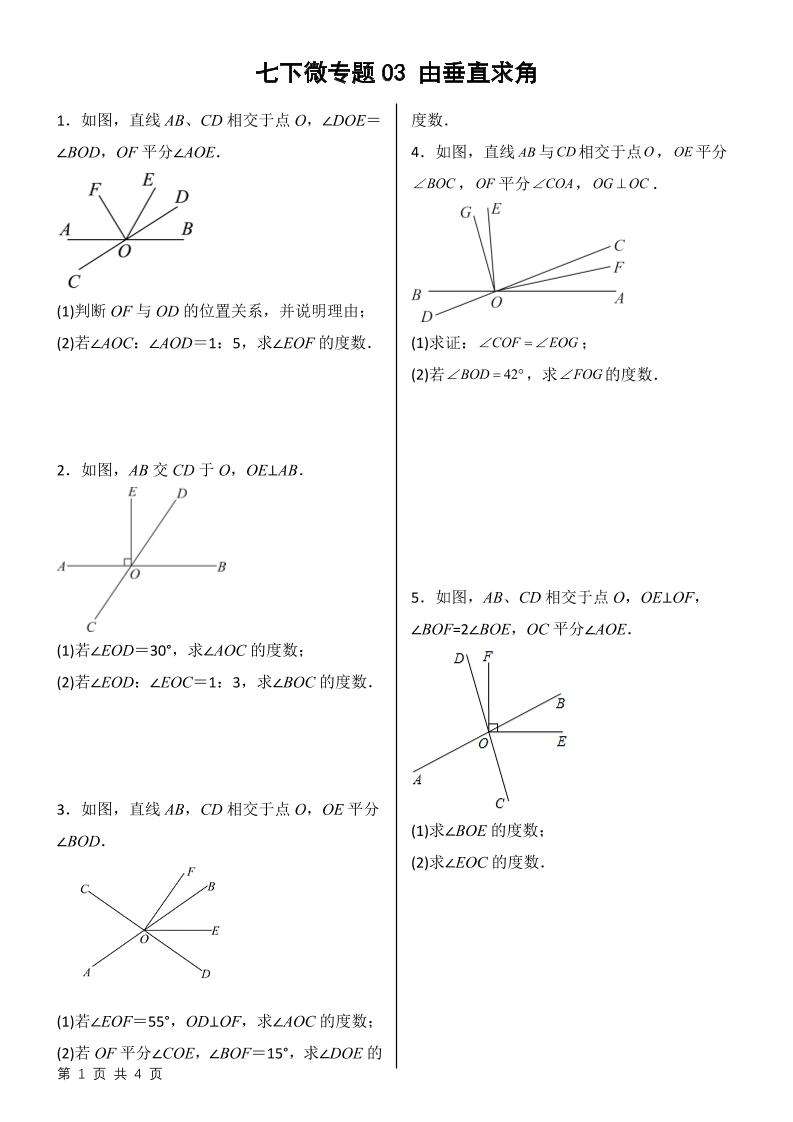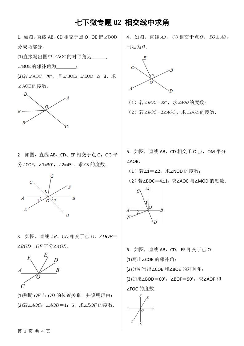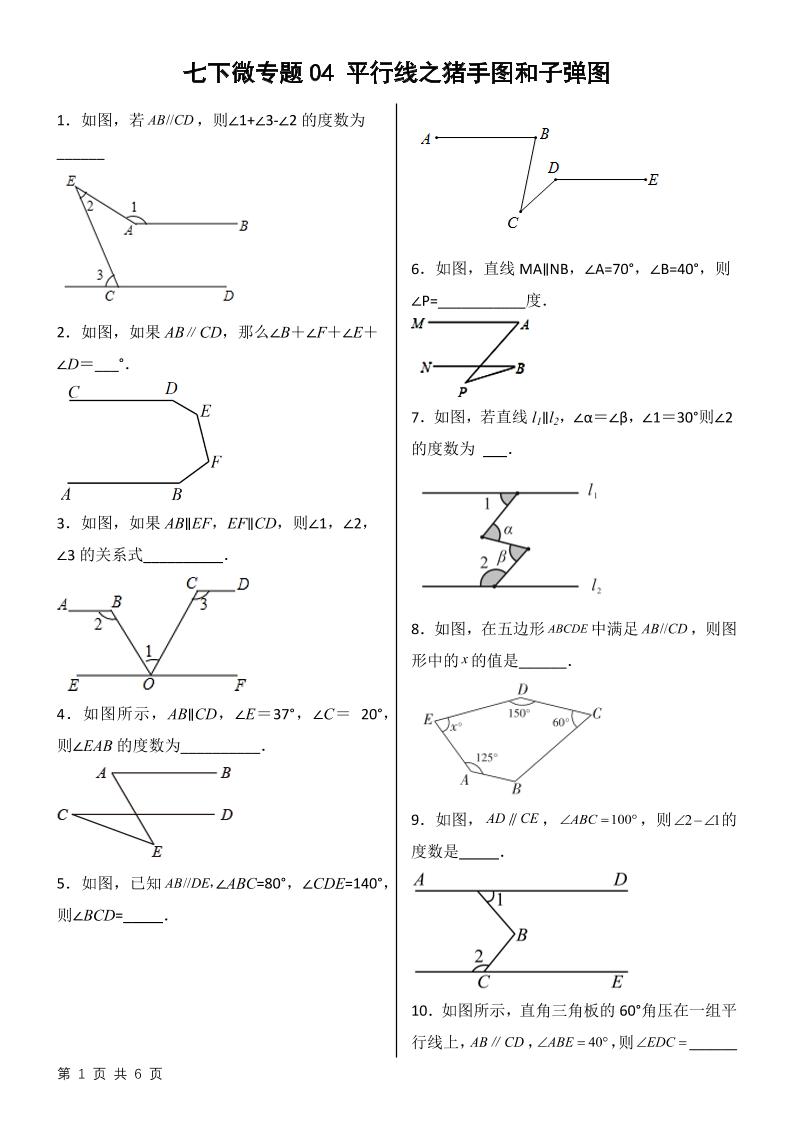 专题6 期末复习题题组——平行线的判定与性质(30题)2025年人教版7年级下册数学(高效学习) 专题6 期末复习题题组——平行线的判定与性质(30题)(原卷版)