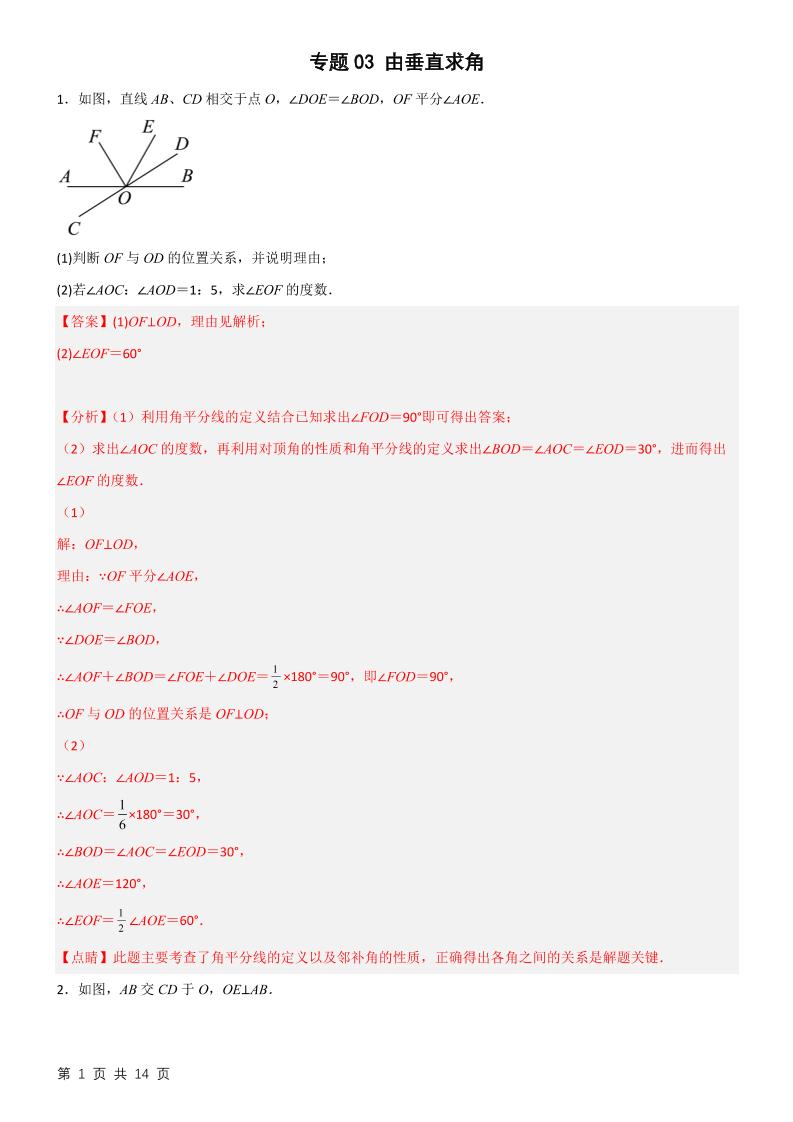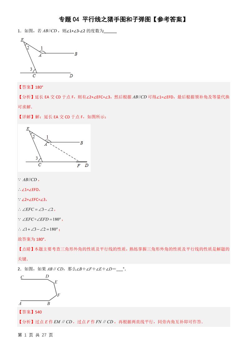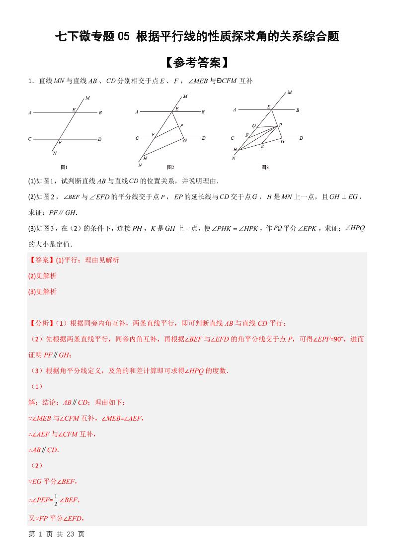 专题05 根据平行线的性质探求角的关系综合题(解析版)