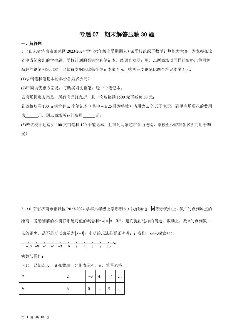 专题07 期末解答压轴30题(原卷版).