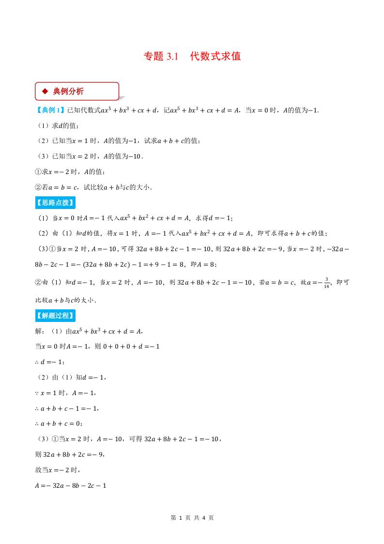 专题3.1 代数式求值(压轴题专项讲练)(原卷版)