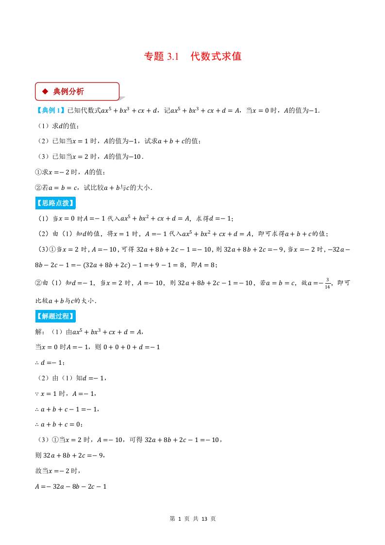 专题3.1 代数式求值(压轴题专项讲练)(解析版)