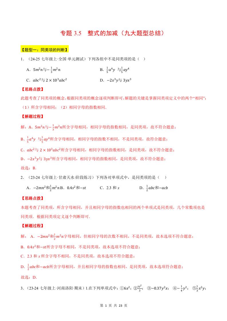 专题3.5 整式的加减(九大题型总结)(压轴题专项讲练)(解析版)