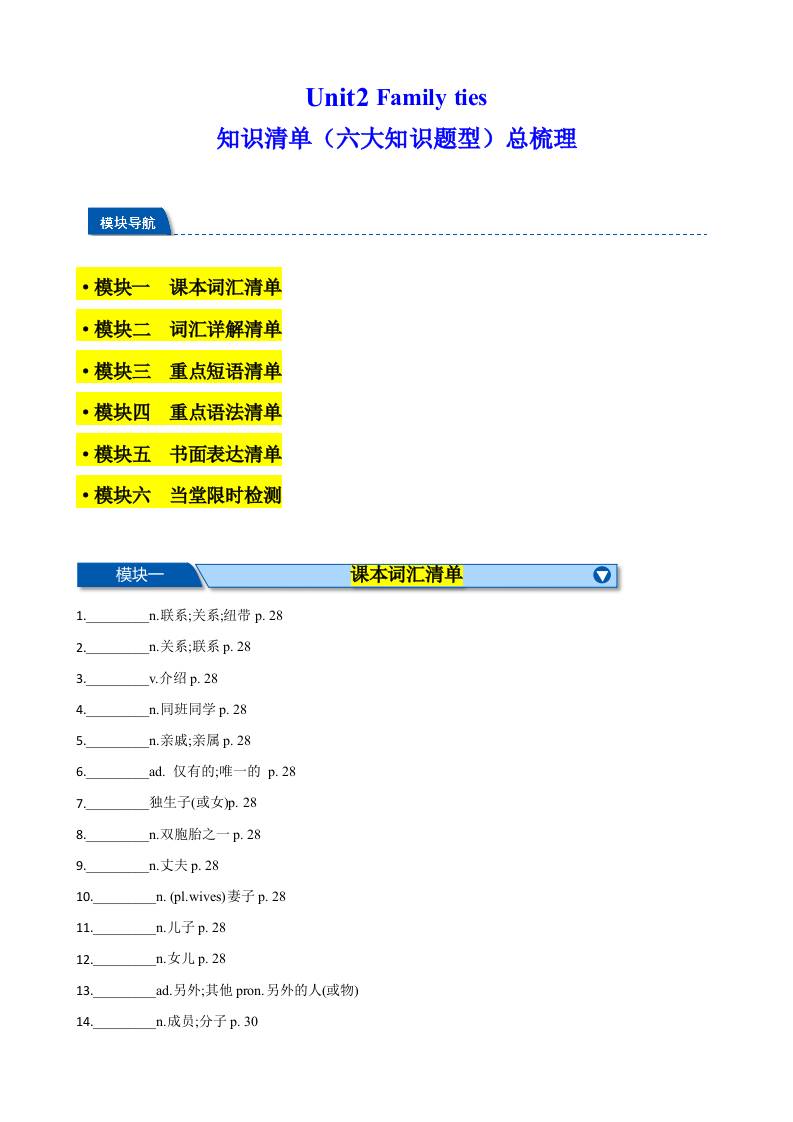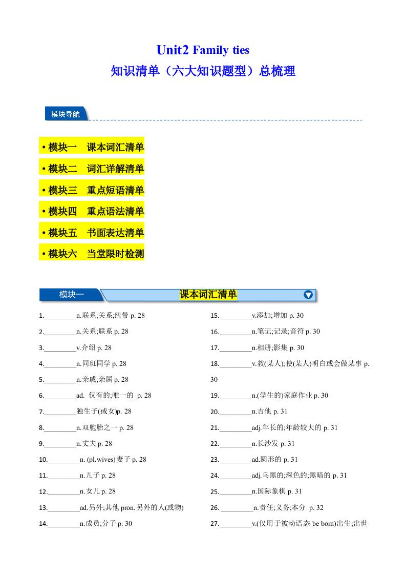 Unit 2 Family ties 知识清单(六大知识题型)总梳理(解析版)