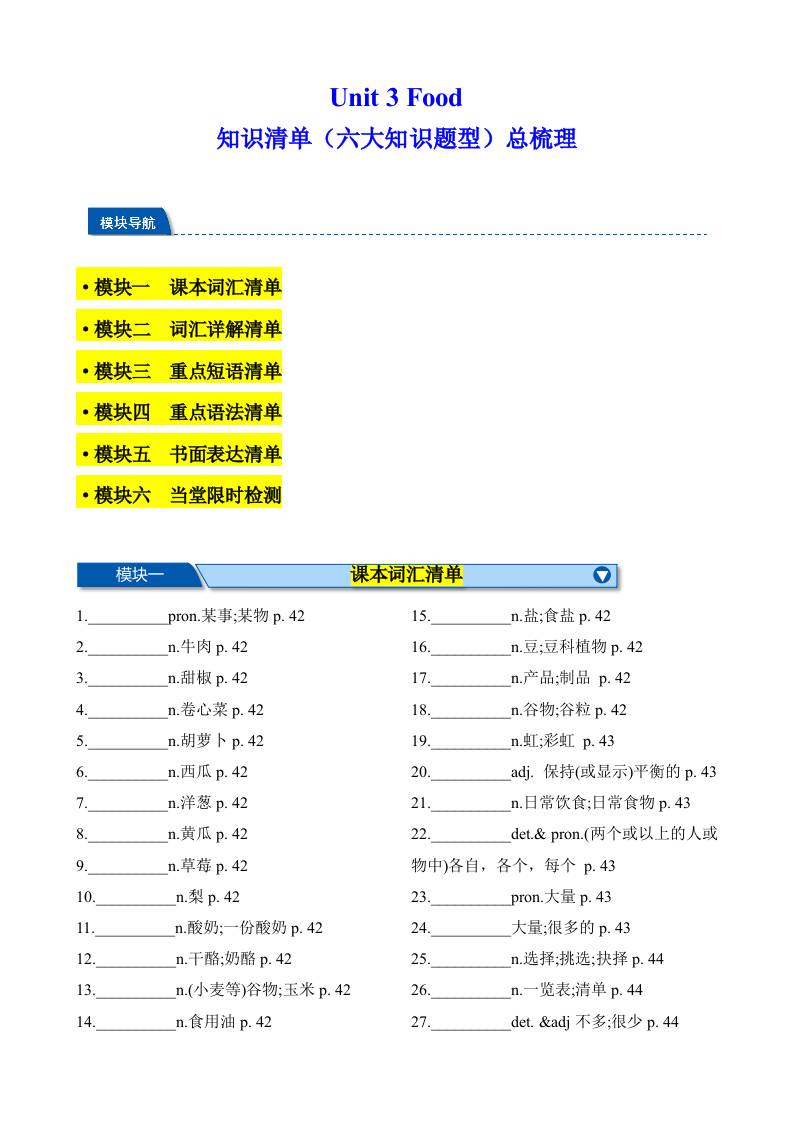 Unit 3 Food 知识清单(六大知识题型)总梳理(原卷版)