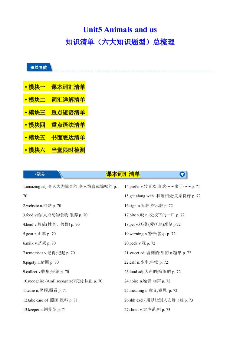Unit5 Animals and us 知识清单(六大知识题型)总梳理(解析版)