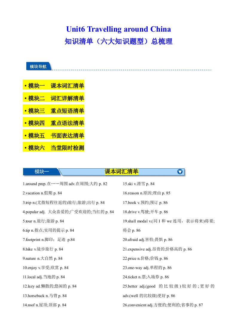 Unit6 Travelling around China 知识清单(六大知识题型)总梳理(解析版)