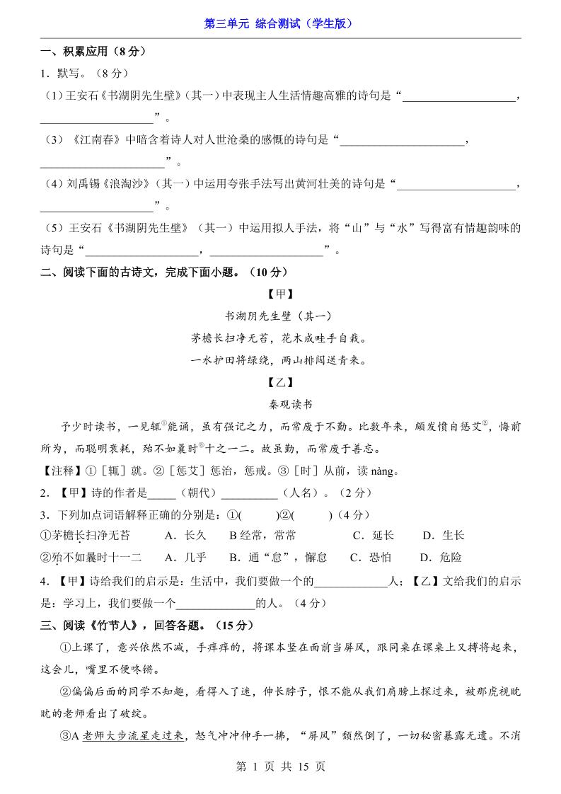 单元综合卷