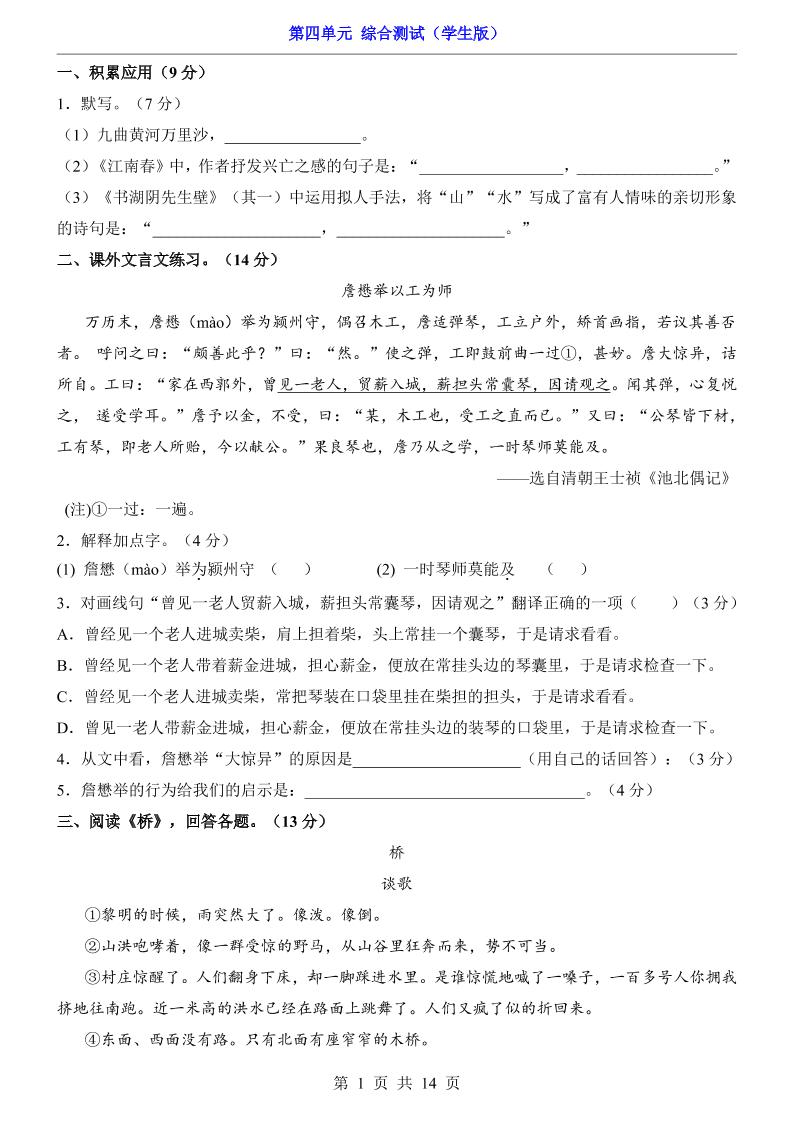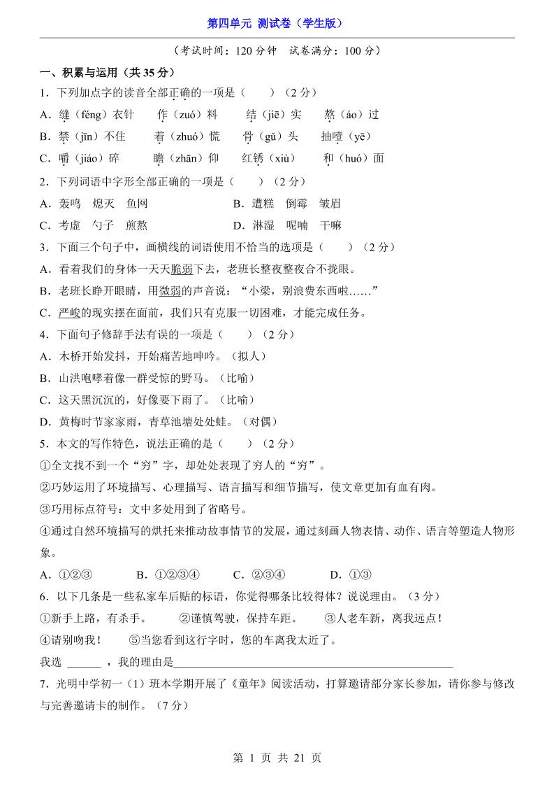 第4单元(测试卷).