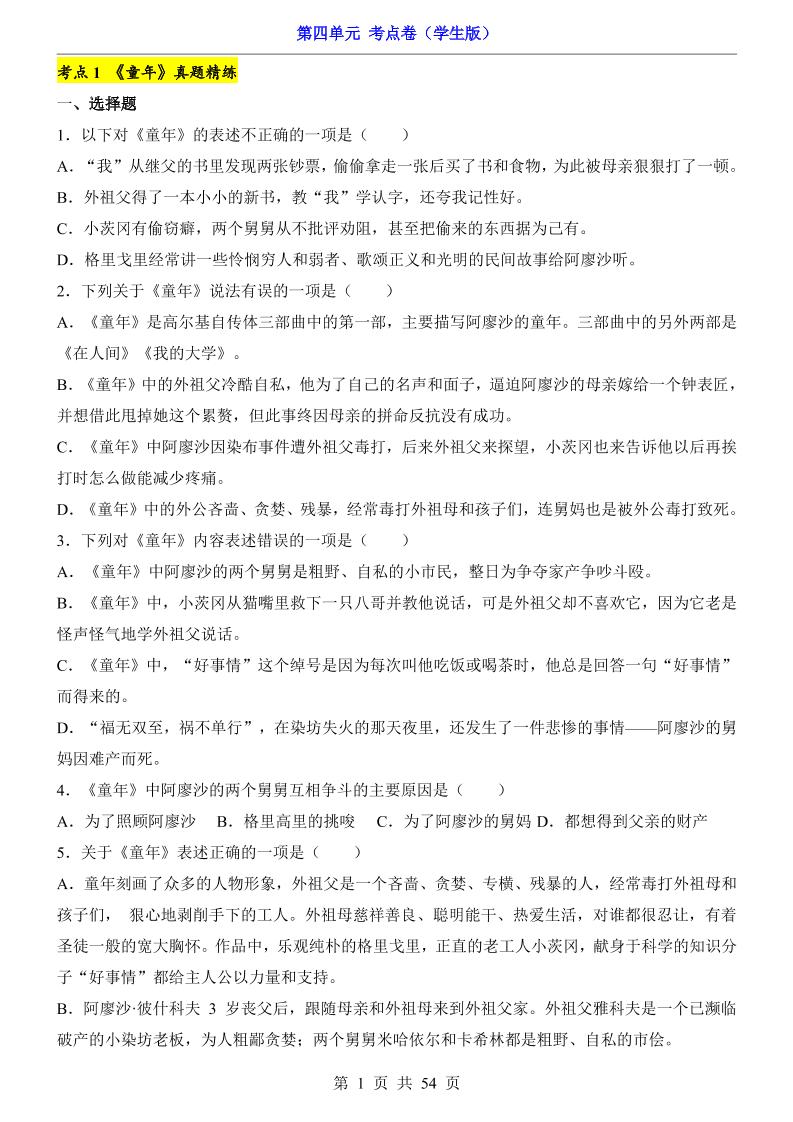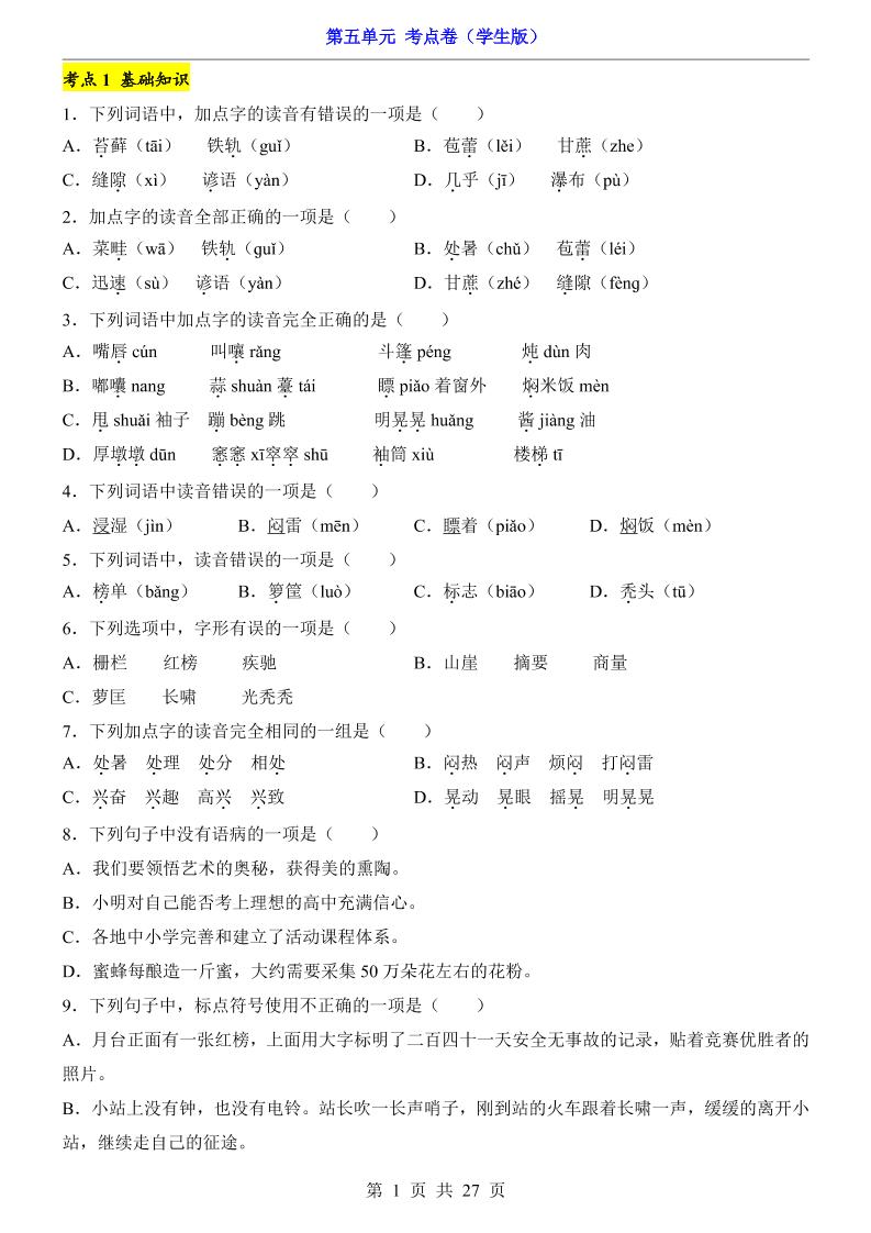第5单元(考点卷).