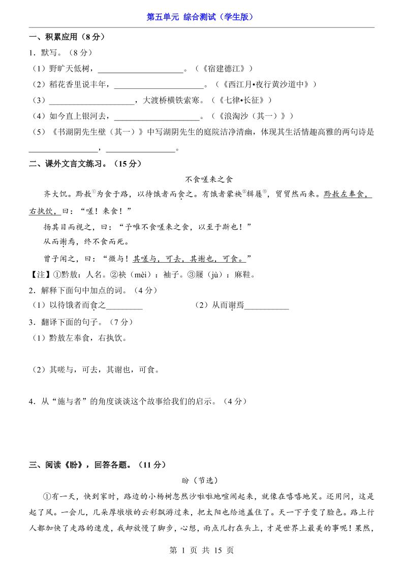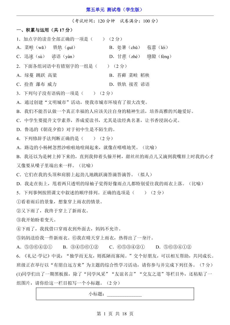 第5单元(测试卷).