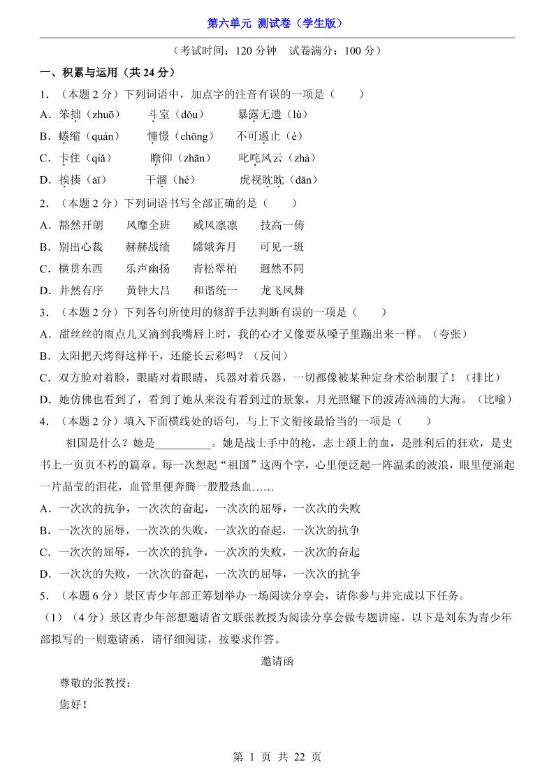 第6单元(测试卷).