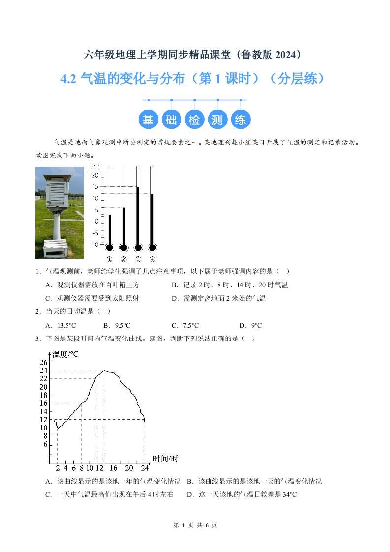 4.2气温的变化与分布(第1课时)(分层练)(原卷版)