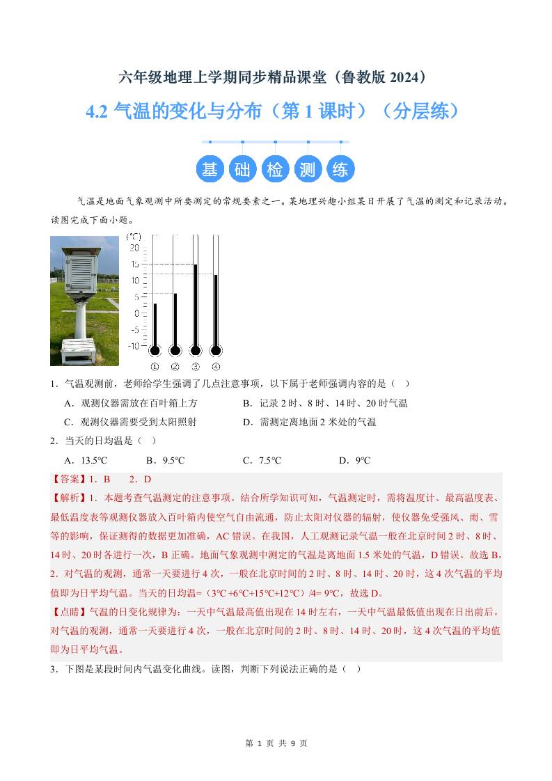 4.2气温的变化与分布(第1课时)(分层练)(解析版)