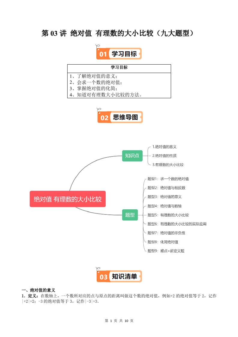 【沪教】第03讲:绝对值有理数的大小比较(九大题型)(原卷版)