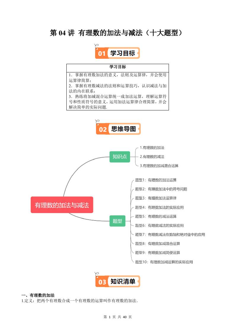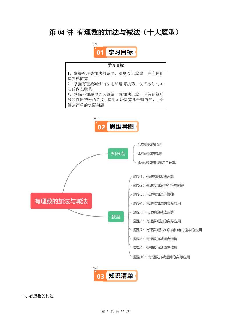 【沪教】第04讲:有理数的加法与减法(十大题型)(原卷版)