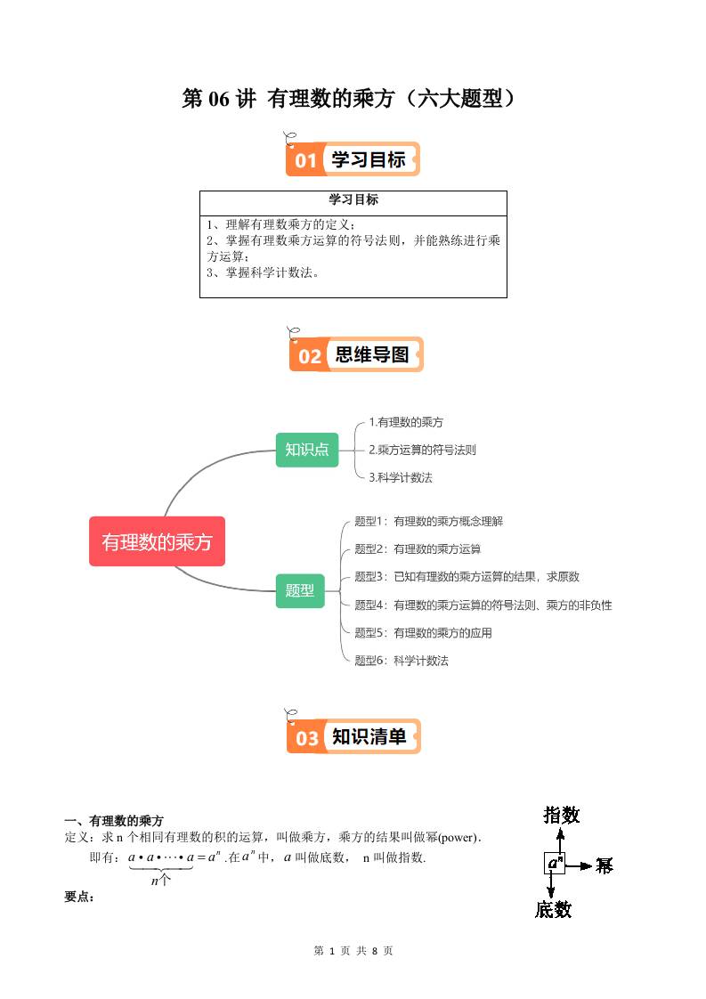 【沪教】第06讲:有理数的乘方(六大题型)(原卷版)