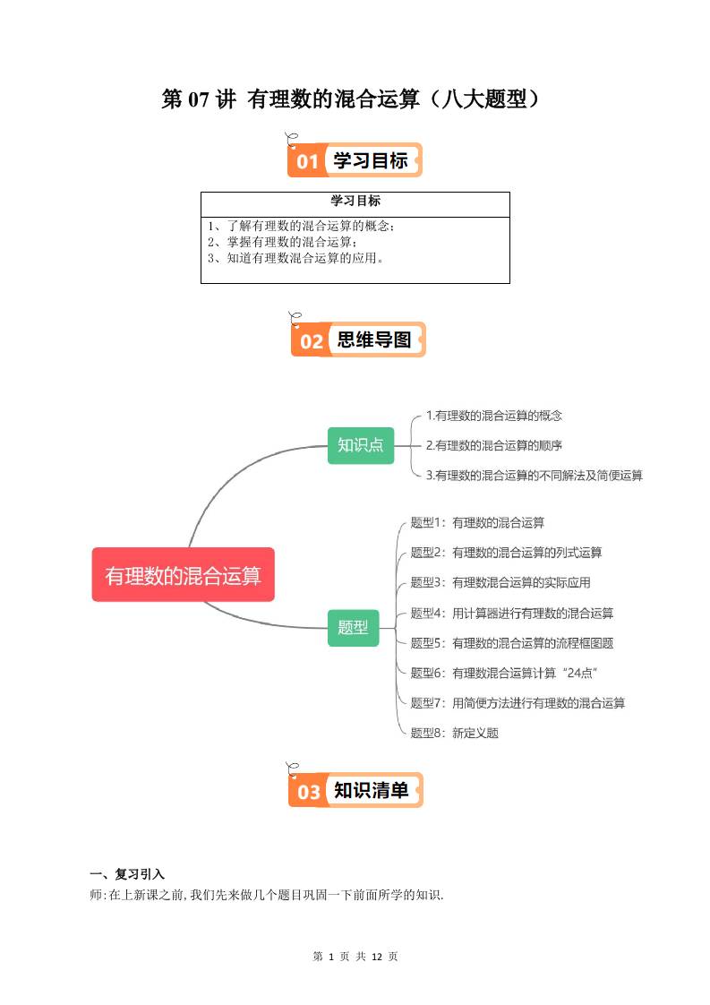 【沪教】第07讲:有理数的混合运算(八大题型)(原卷版)