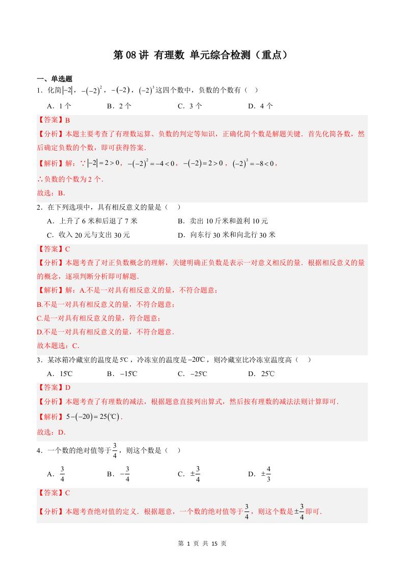 【沪教】第08讲:有理数单元综合检测(重点)(解析版)