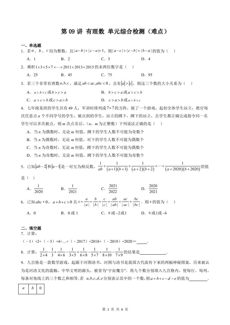 【沪教】第09讲:有理数单元综合检测(难点)(原卷版)