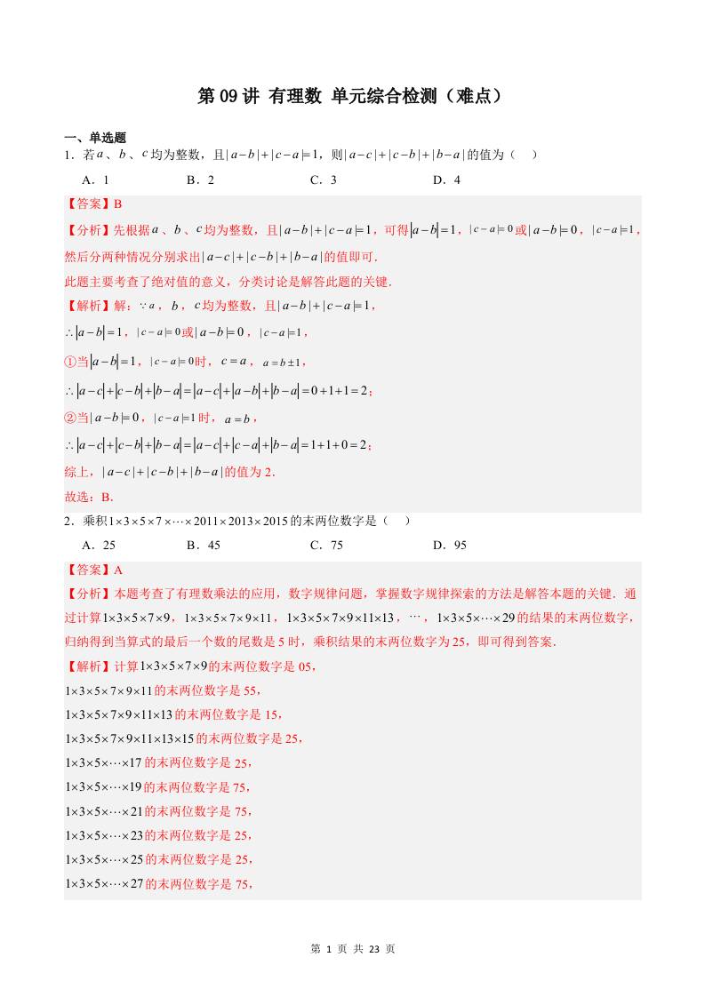 【沪教】第09讲:有理数单元综合检测(难点)(解析版)