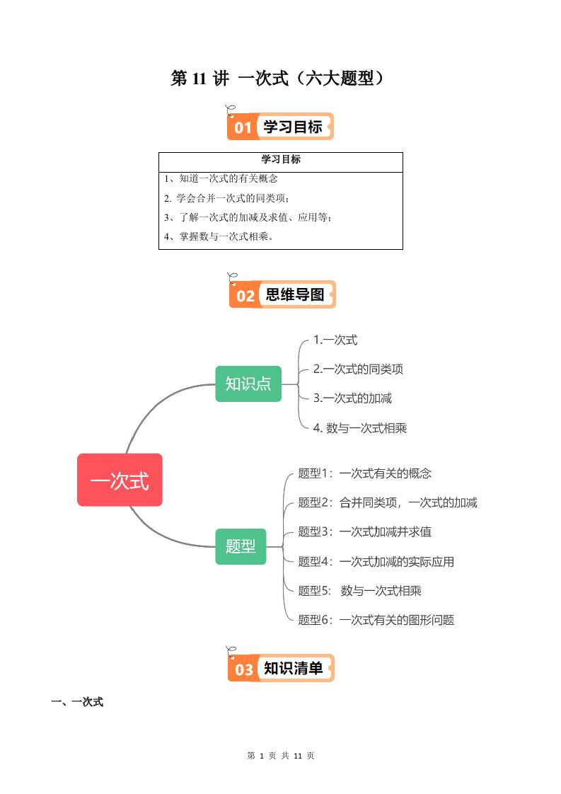 【沪教】第11讲:一次式(六大题型)(解析版)