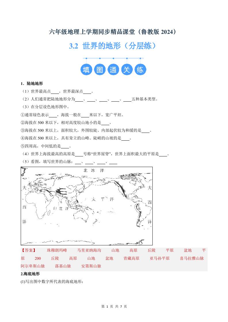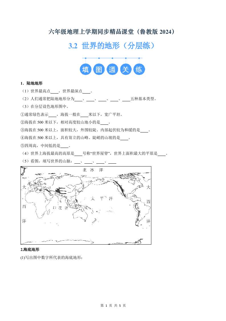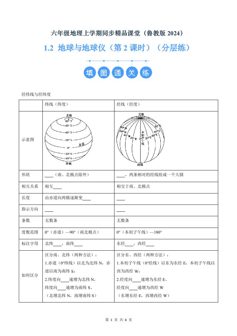 1.2 地球与地球仪(第2课时)(分层练)(原卷版)