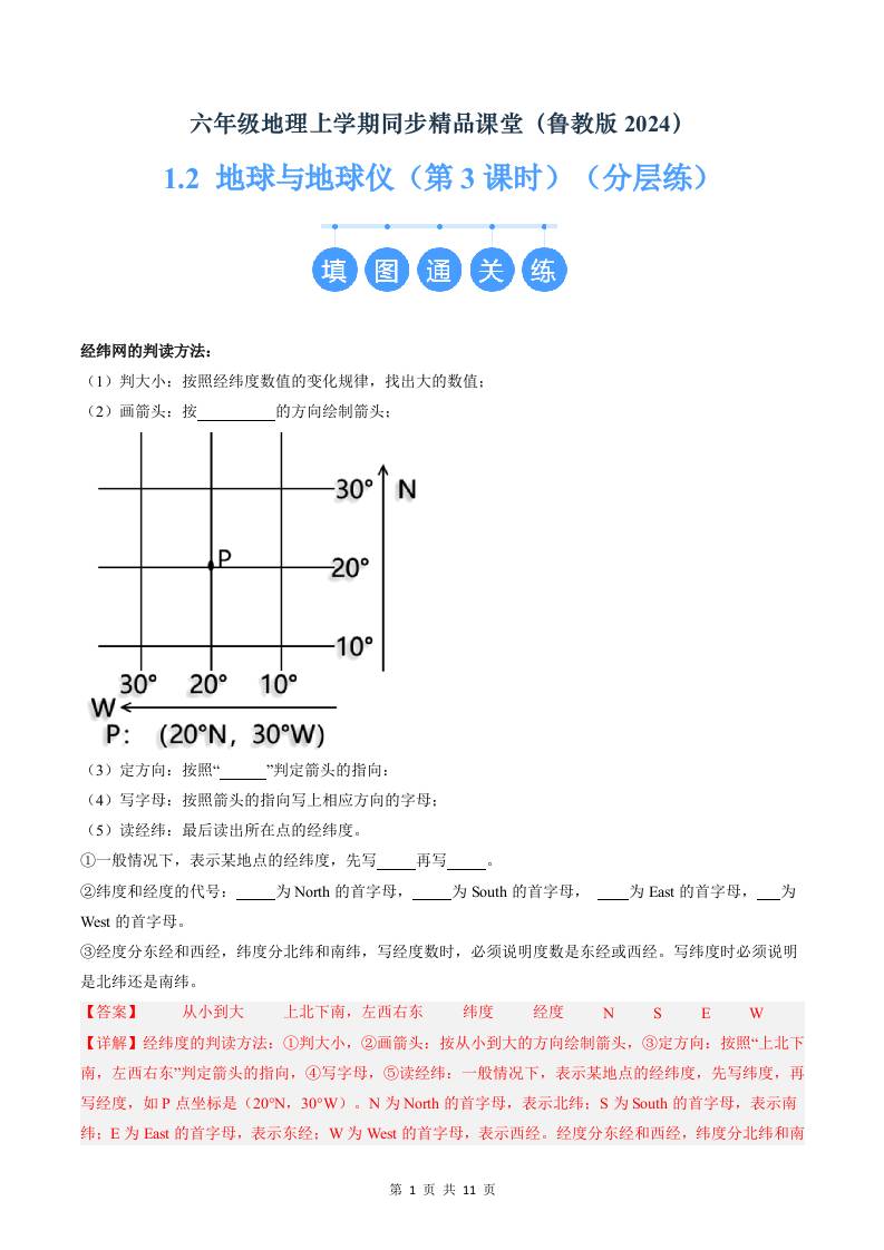 1.2 地球与地球仪(第3课时)(分层练)(解析版)