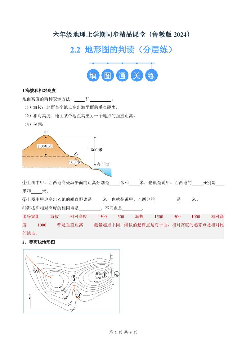 1.2 地球与地球仪(第2课时)(分层练)(解析版)