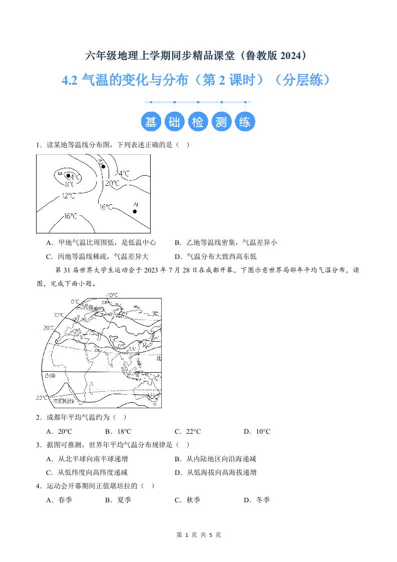 4.2气温的变化与分布(第2课时)(分层练)(原卷版)
